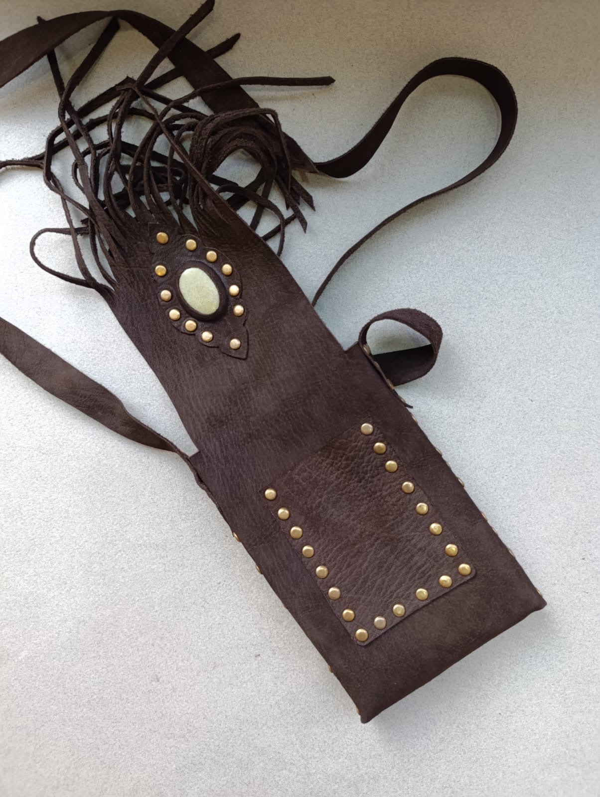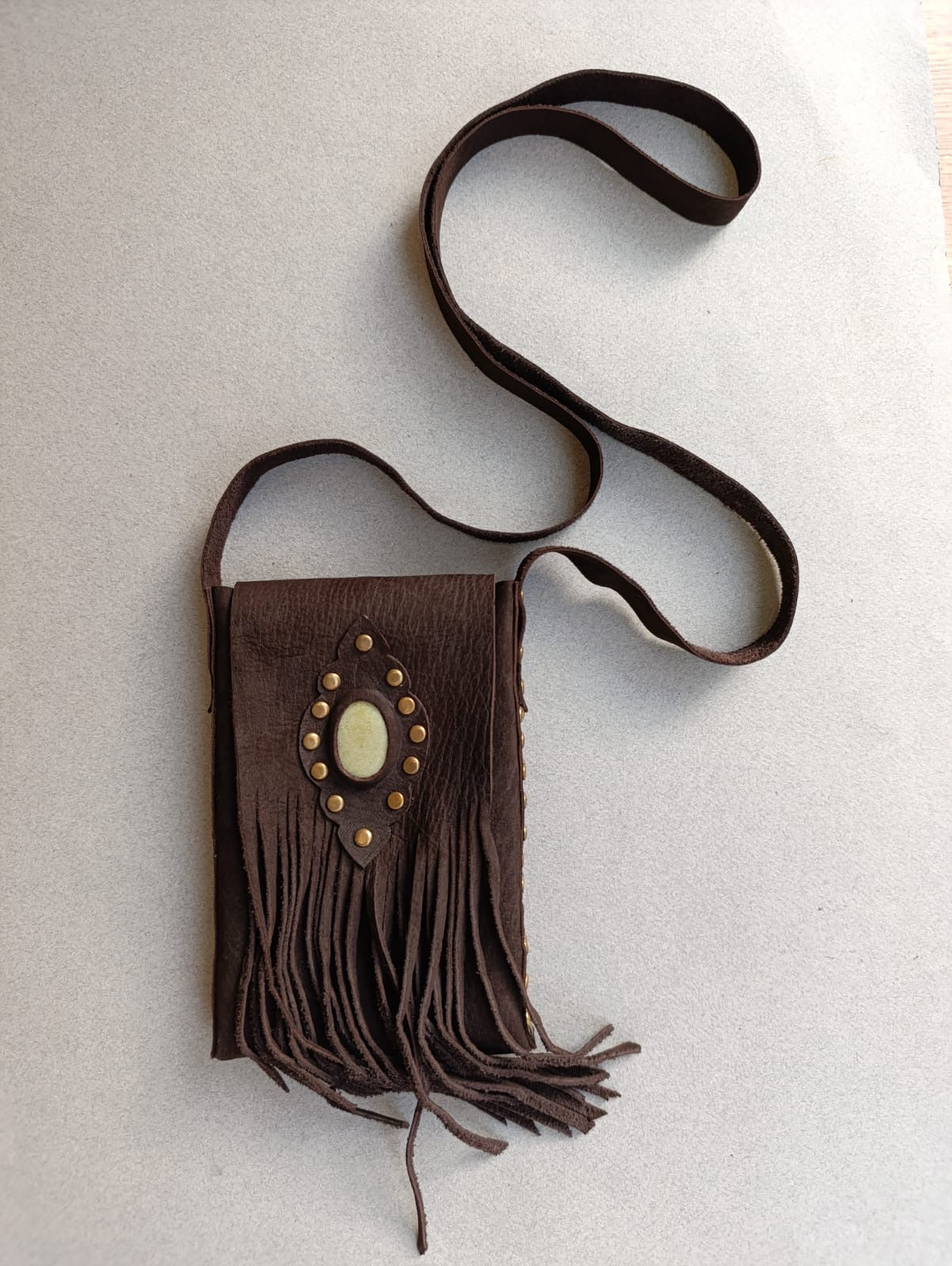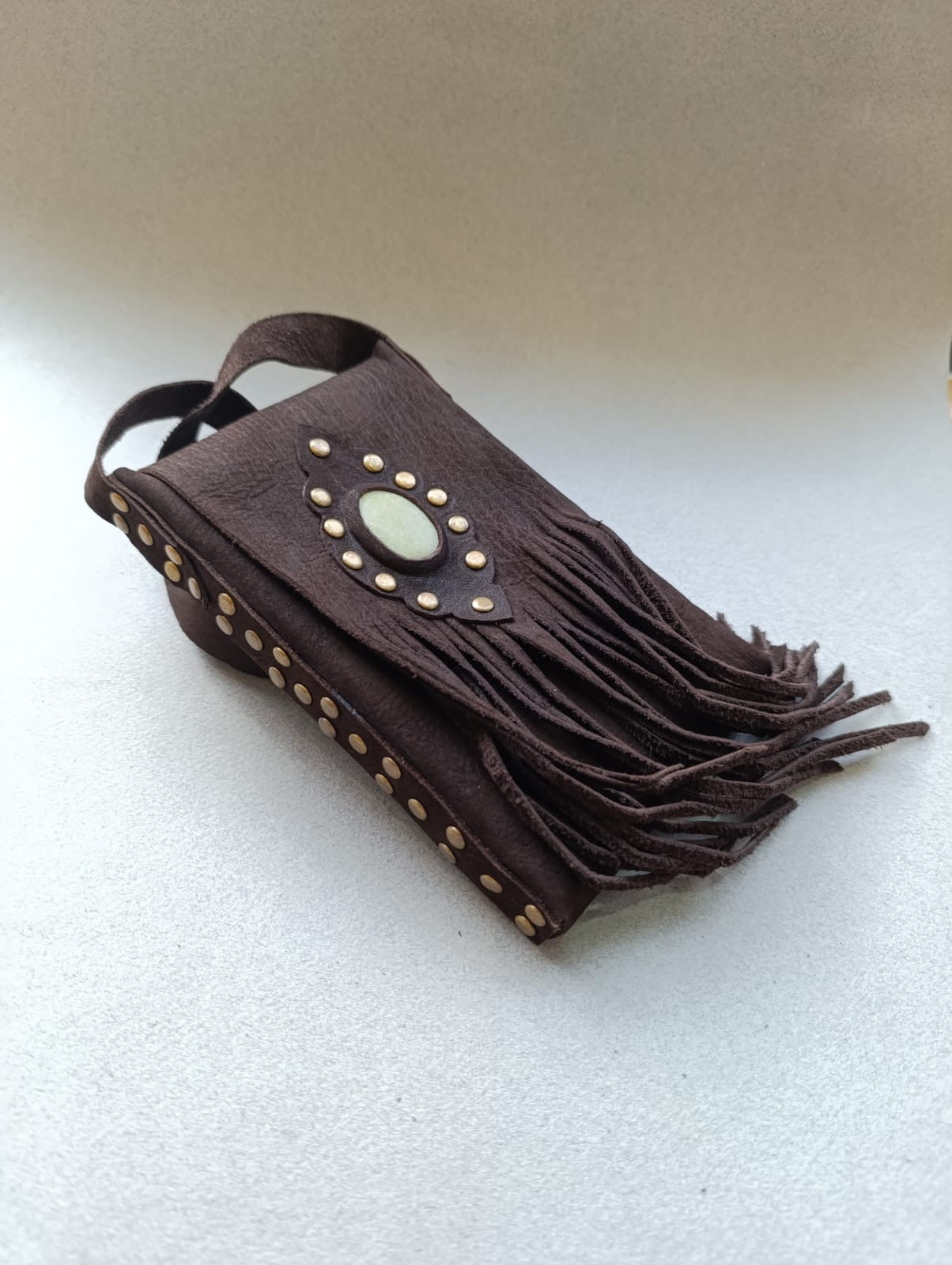 حقيبة مصنوعة يدويا من الجلد الطبيعي مع حجر عقيق