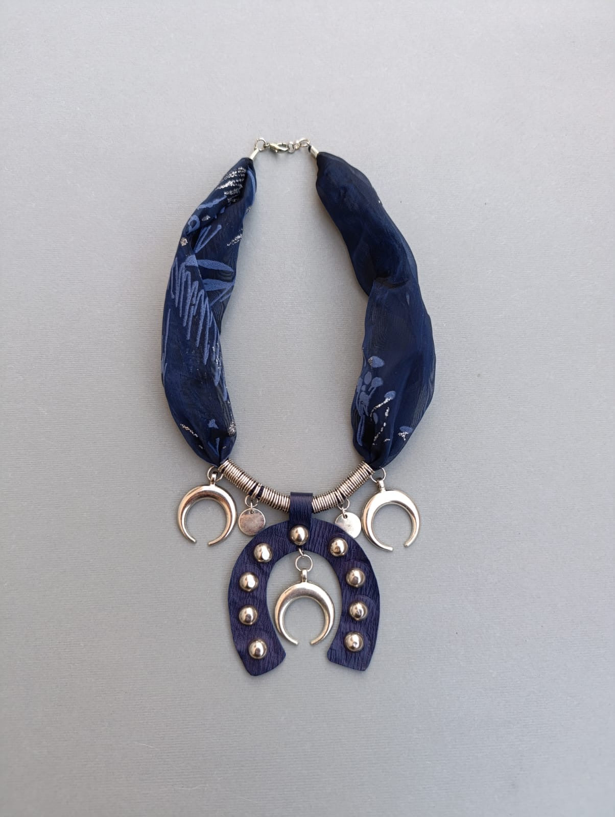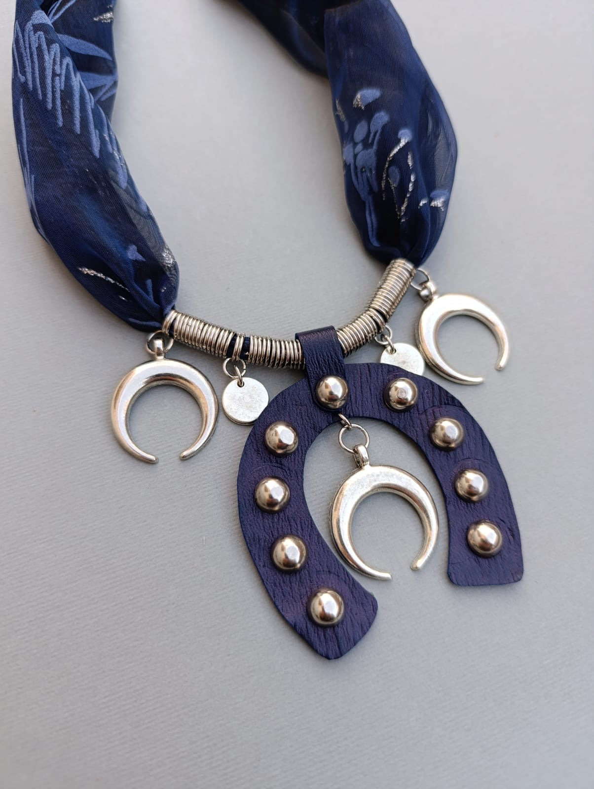 عقد متوسط الطول مصنوع يدويا من القماش مع النيكل والجلد الطبيعي