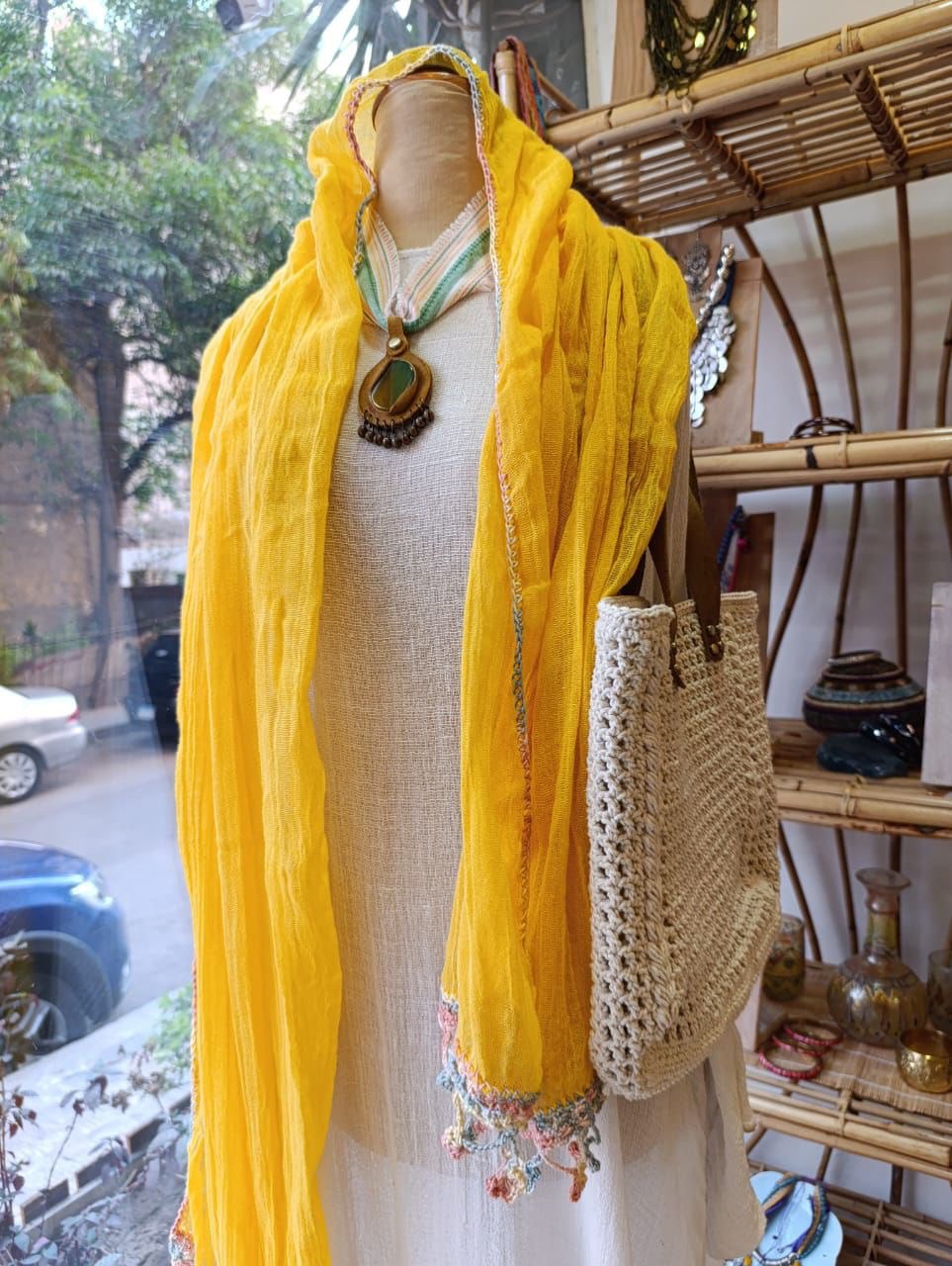 سكارف كتان بإطار كروشية قطن ملون